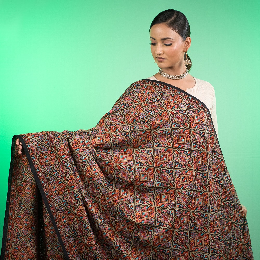 Perfect for formal evenings, weddings, festive occasions, and distinguished day wear, this shawl pairs effortlessly with sarees, suits, kurtas, coats, and contemporary outfits. Its versatile design allows it to complement both ethnic and western ensembles, ensuring that every wearer experiences elegance and style. Whether attending a grand celebration, cultural ceremony, or formal gathering, the Black Kashmiri Shawl elevates any outfit with regal charm.