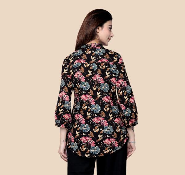 Black Multi Floral Printed Cotton Short Kurti