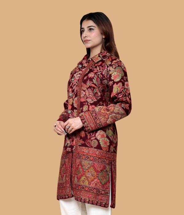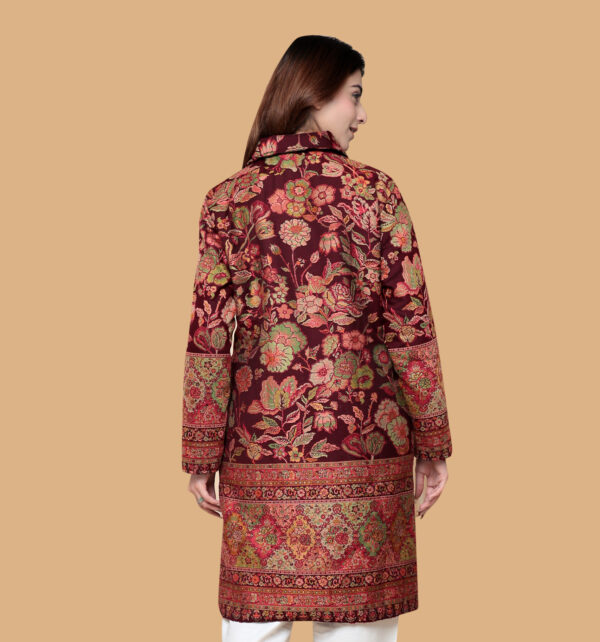 Add a touch of traditional elegance to your winter wardrobe with this ladies long Kashmiri coat. Crafted with a premium polyester wool blend fabric, the coat offers warmth and durability while maintaining a comfortable feel. The soft fur lining inside provides extra insulation, making it ideal for cold weather. The attractive red and white color combination enhances its stylish appeal, making it perfect for both casual and semi-formal occasions. Designed with a long silhouette for better coverage and warmth, this coat pairs beautifully with ethnic or modern outfits. Easy to maintain with dry clean, machine wash, or hand wash options. Available in M, L, XL, and XXL sizes to ensure a perfect fit.