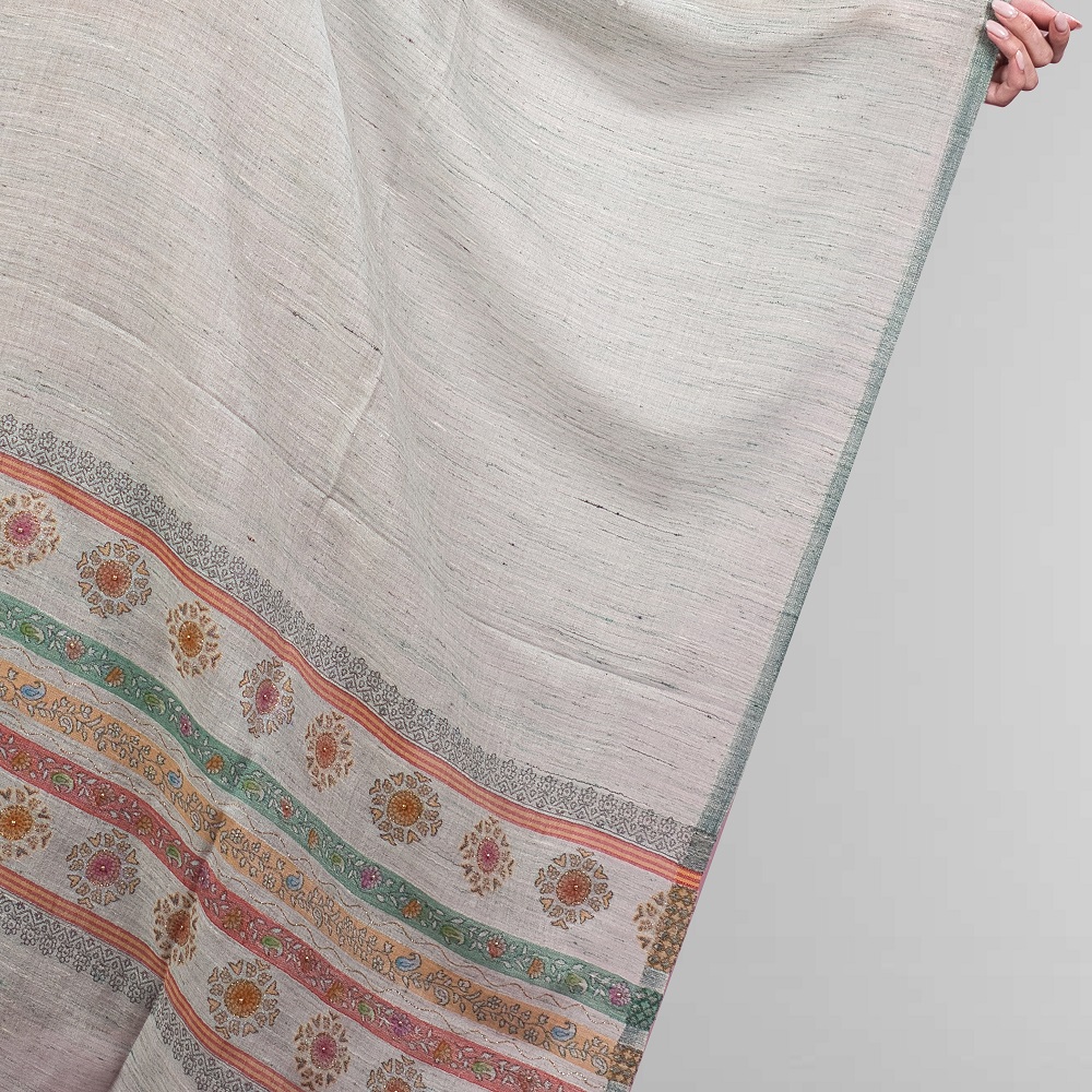 Subtle embellishments add a gentle shimmer to the surface. They enhance the design while preserving its refined charm. Because of this thoughtful detailing, the Mridula Rangrekha Stole works well for festive occasions, formal gatherings, office wear, and casual outings. You can style it easily for day events and evening celebrations alike.